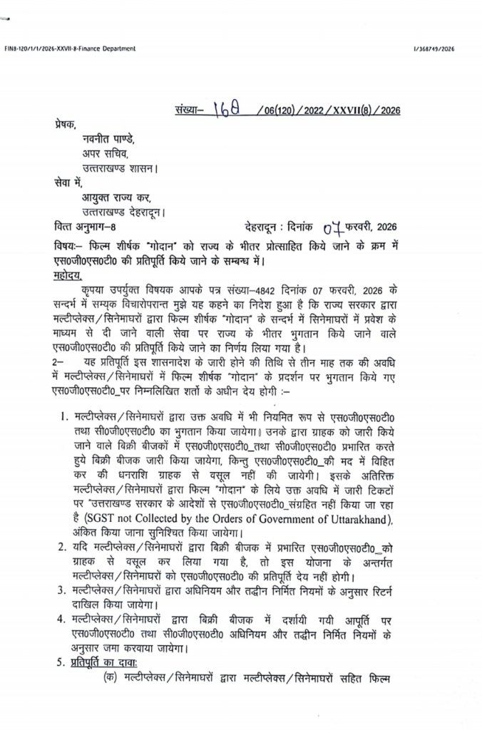 देहरादून 7 फ़रवरी 2026: ग्रामीण जीवन और गोवंश के महत्व पर आधारित फिल्म ‘गोदान’ को उत्तराखंड राज्य में टैक्स फ्री कर दिया गया है। इस...