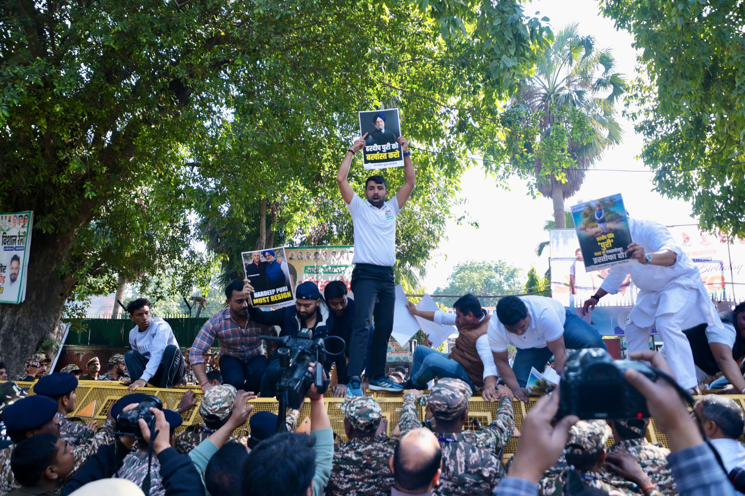 युवा कॉंग्रेस का हरदीप सिंह पुरी के इस्तीफे की मांग को लेके विरोध प्रदर्शन