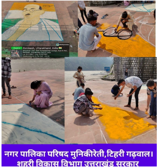 इसी क्रम में नगर पालिका परिषद मुनिकीरेती के आस्था पथ पर स्वच्छता उत्सव के तहत रंगोली कार्यक्रम का आयोजन किया गया। पूर्ण नन्द स्कूल के बच्चों ने सूजी, हल्दी और अन्य ईको-फ्रेंडली प्राकृतिक सामग्री का उपयोग कर स्वच्छता थीम पर रंगोली बनाई। इस अवसर पर पालिका अध्यक्ष श्रीमती नीलम बिजलवान, अधिशासी अधिकारी श्रीमती अंकिता जोशी, सेनेटरी इंस्पेक्टर श्री कमल सिंह चौहान सहित पालिका के पर्यावरण मित्र, पर्यवेक्षक और कर्मचारी उपस्थित रहे।